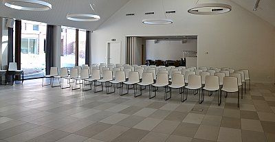 • geschikt voor voordrachten, plechtigheden (o.m. uitvaarten), recepties, debatten, podiumactiviteiten, vormingen, workshops, e.d.