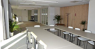 polyvalente, moderne vergaderzaal met daglicht en zicht op binnentuin
