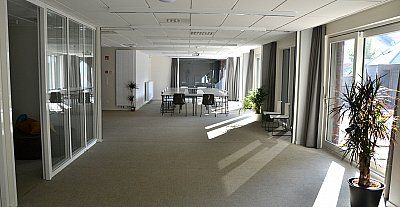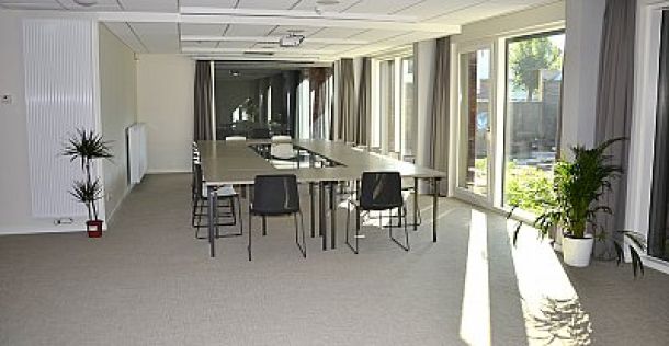 polyvalente, moderne vergaderzaal met daglicht en zicht op binnentuin